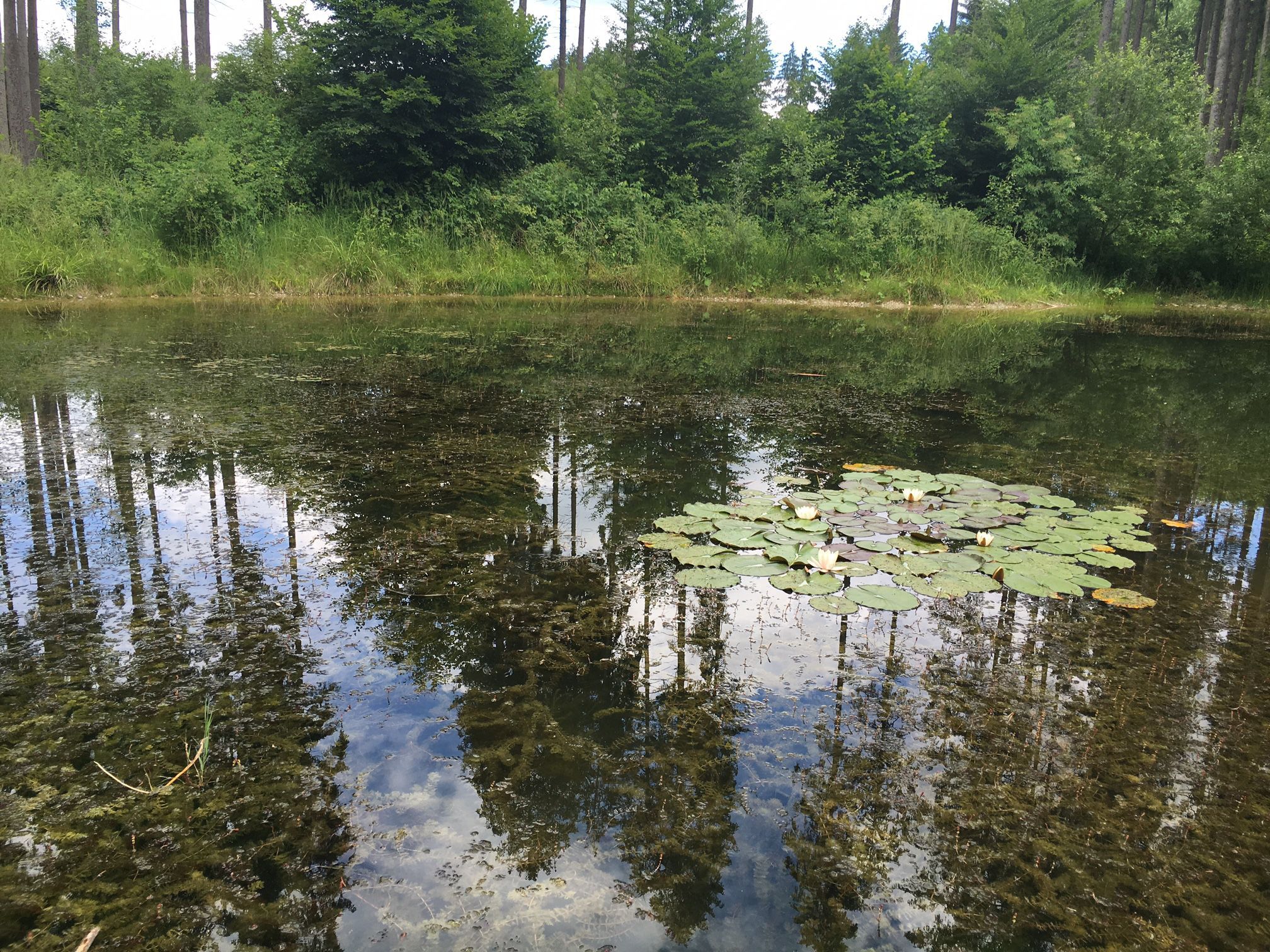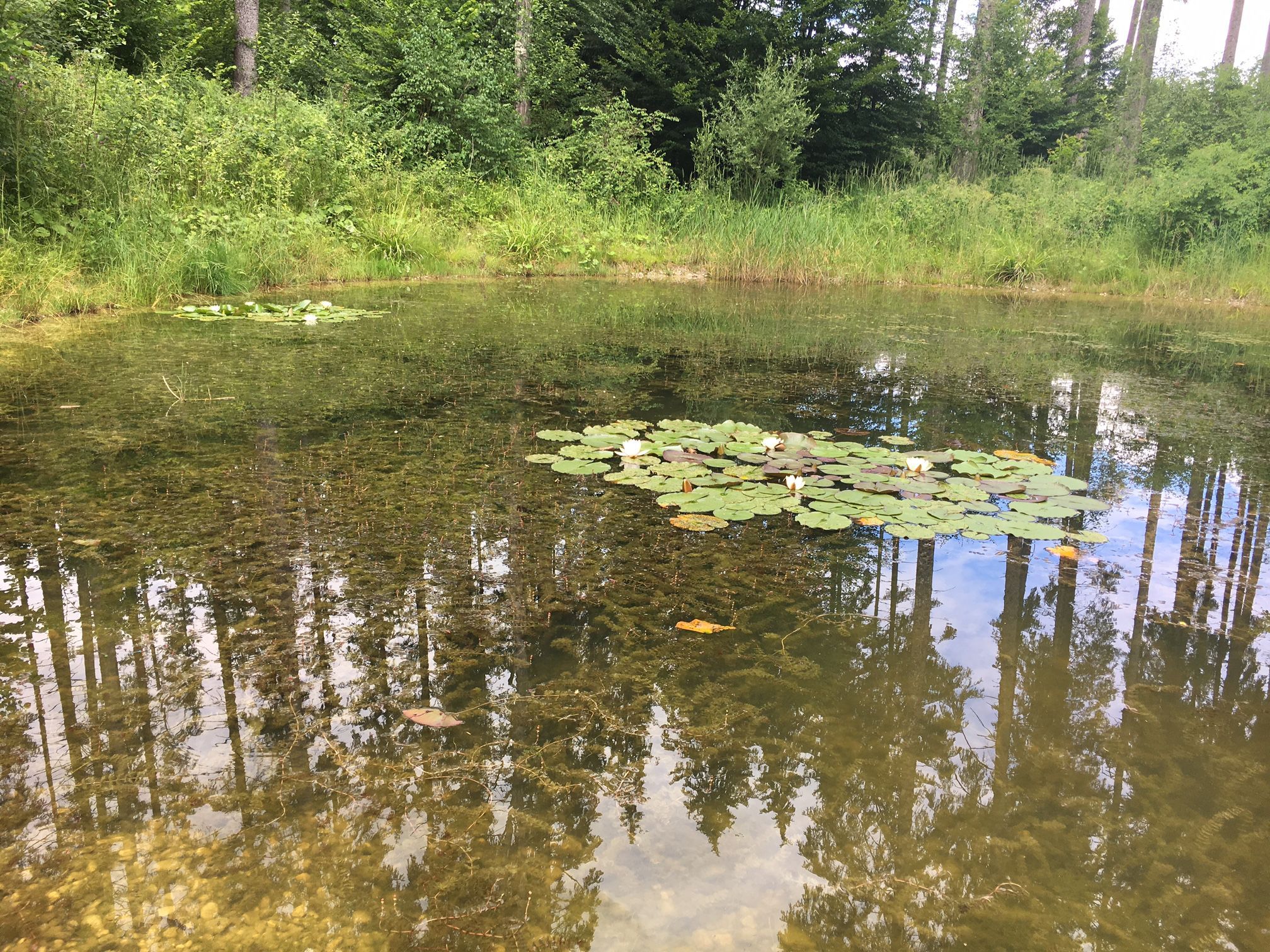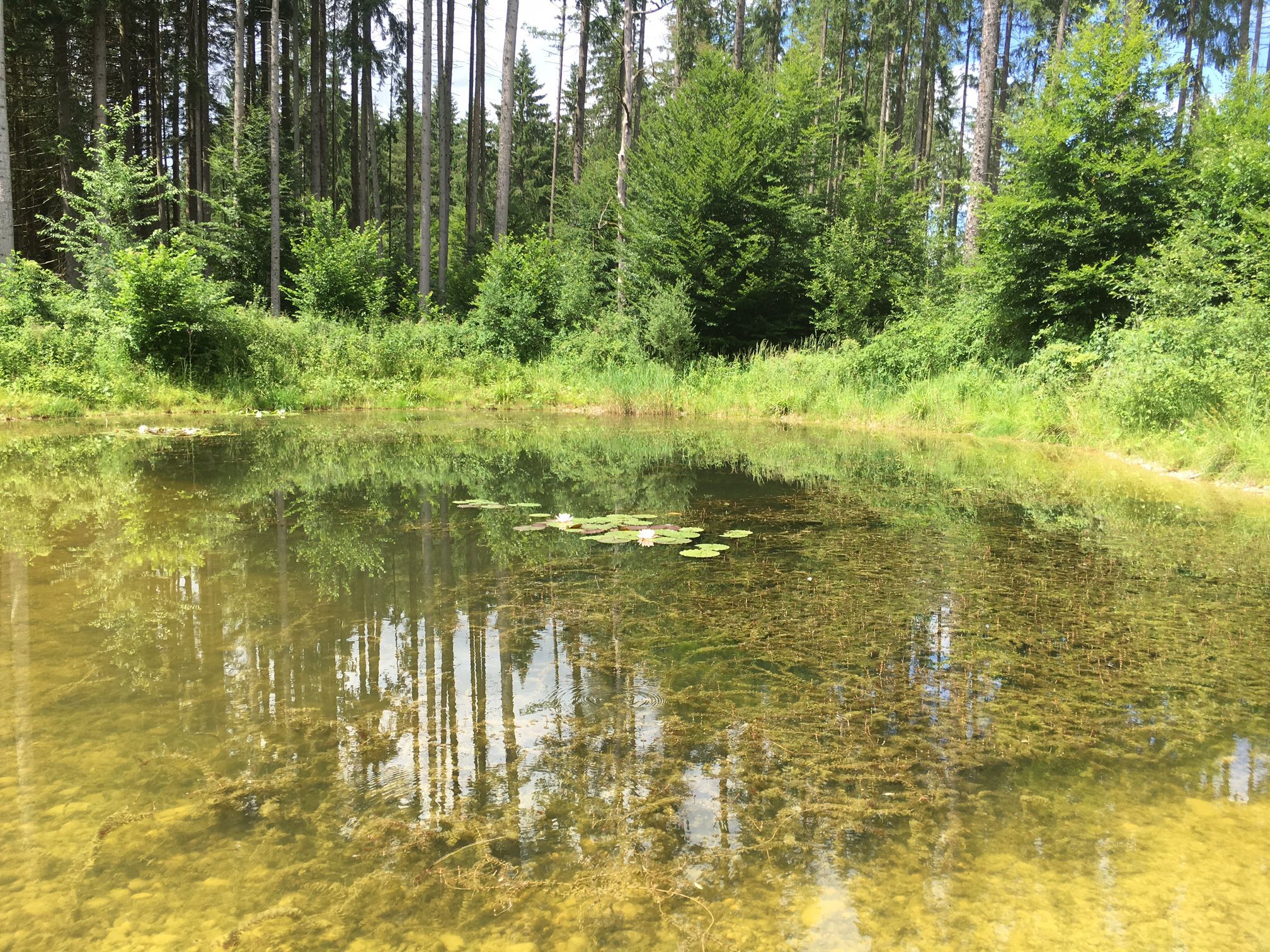 - Bewegung im Wasser zeigt weiteres Leben an: Bergmolche, Blutegel, kleine Fische, Gelbrandkäfer.