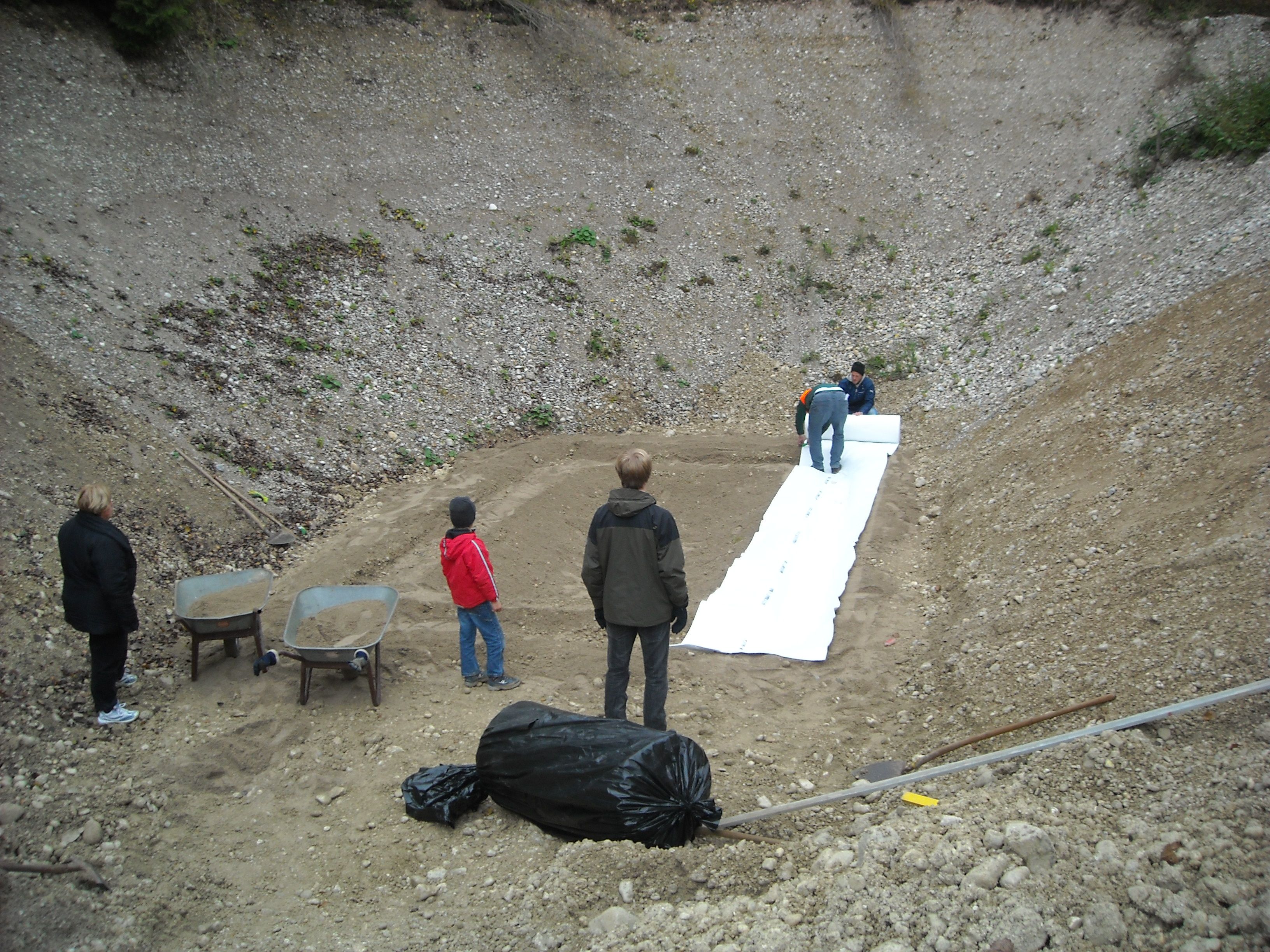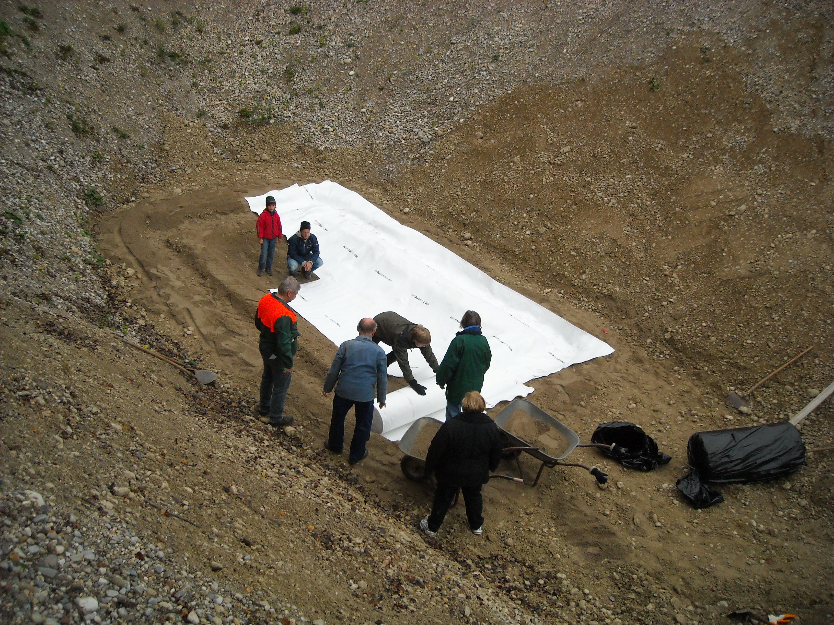 Wir haben ein neues Laichgewässer für Gelbbauchunken am oberen Rand der Mühlweg-Kiesgrube angelegt, das etwas sonniger und wärmer liegt als das alte am Grund der Kiesgrube. Die Kinder unserer Kindergruppe haben begeistert migearbeitet. Wir werden beobachten, wie es angenommen wird.